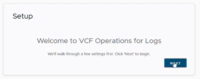 We will start a new deployment, enter your e-mail address, admin credentials, some system notification contact information, NTP information, SMTP server information for notifications to be sent with.  Now we are ready to integrate vSphere with VCF 9 Operations for Logs!